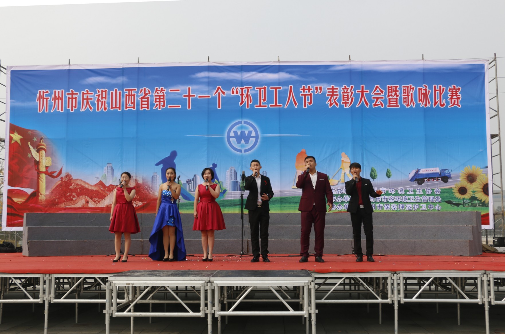 金秋十月,伴隨著十九大的勝利閉幕,環(huán)衛(wèi)工人迎來了自己的節(jié)日“環(huán)衛(wèi)工人節(jié)”。 10月26日上午9時,為了感謝黨和政府對環(huán)衛(wèi)工人的關(guān)心愛護(hù),展示新時期環(huán)衛(wèi)工人在平凡崗位上積極向上、激流勇進(jìn)的排頭兵風(fēng)貌和不怕苦累的突擊隊(duì)精神,忻州市環(huán)衛(wèi)處“慶祝山西省第二十一個‘環(huán)衛(wèi)工人節(jié)’表彰大會暨歌詠比賽” 在大西高鐵忻州站廣場如期舉行,用環(huán)衛(wèi)工人自己的歌聲歌唱我們偉大的祖國。來自全市的千余名環(huán)衛(wèi)工人歡聚一堂,慶祝自己的節(jié)日,市政府副市長武憲堂以及市工會、市住建局、市環(huán)衛(wèi)處等有關(guān)領(lǐng)導(dǎo)出席會議,并與環(huán)衛(wèi)工人一同觀看了歌詠比賽。