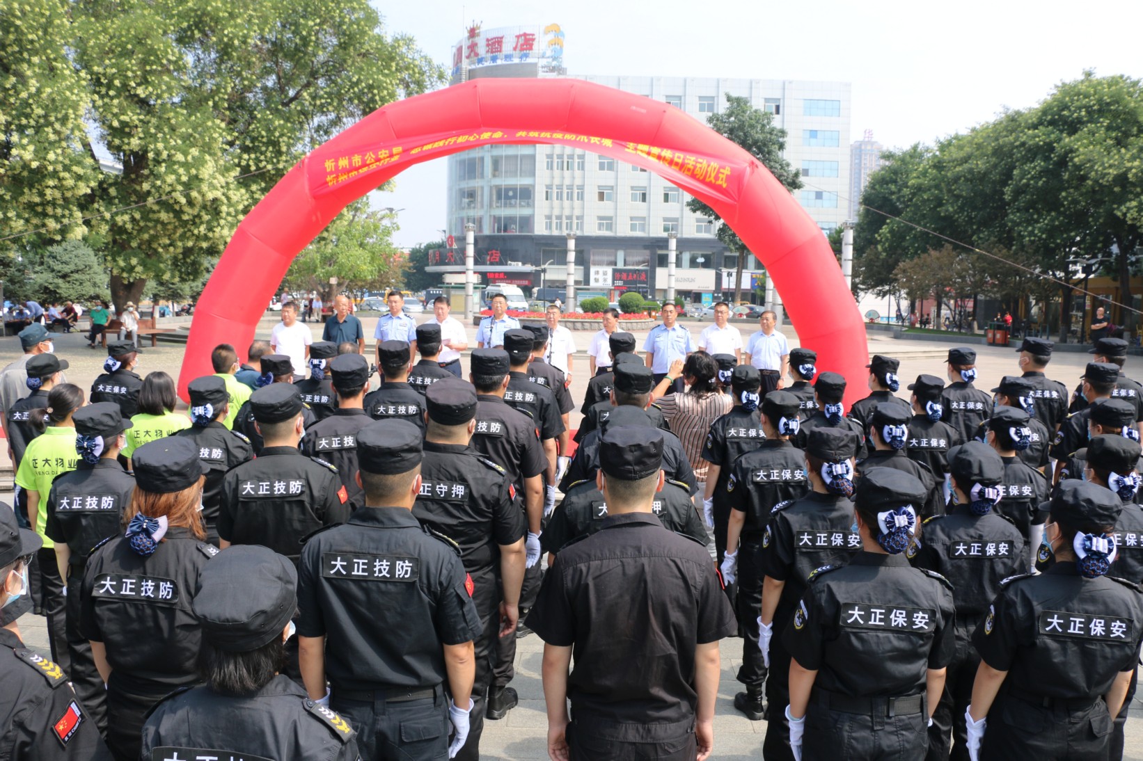 2020年7月24日,是第二個全國保安主題宣傳日,為充分展示忻州保安行業(yè)風(fēng)采,忻州保安行業(yè)在城區(qū)日月廣場舉行“忠誠踐行初心使命、共筑抗疫防汛長城”主題宣傳日活動。忻州市公安局、忻州市保安協(xié)會、忻州市公安局直屬分局、忻州市公安局忻府分局、山西大正保安服務(wù)有限公司及全市11家保安企業(yè)負責(zé)人、保安隊員代表120余人參加活動。
