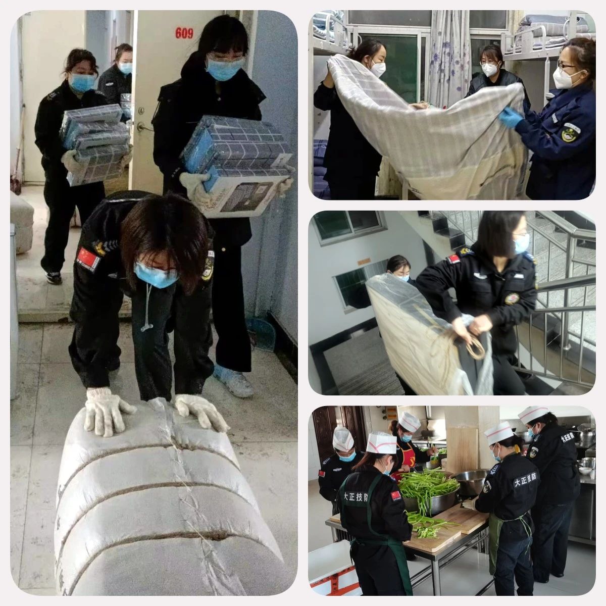 在這場沒有硝煙的戰(zhàn)爭中,大正的鏗鏘玫瑰們聽從公司指揮、勇毅“逆行”。在接到抗疫任務(wù)的第一時間便趕回工作崗位,得知需要24小時備戰(zhàn)執(zhí)勤時,她們和其他男同志一樣默默接受,沒有任何怨言。雖然她們已身為人妻人母,但是為了疫情防控的需要,她們選擇了和家人暫時的分離,無法顧及家里人的生活,一心抗疫。她們有的是辦公室人員、有的是監(jiān)控人員、有的是技防人員、有的是勤務(wù)指揮中心人員,她們都是普通的工作人員,家中有年邁的父母、年幼的孩子,有付出,也有虧欠......但面對疫情,她們做出了相同的選擇——那就是挺身而出,迎難而上,她們說:“既然選擇作為大正的保安,我們就要像其他男同事一樣沖鋒陷陣。”她們用實際行動詮釋著大正人的奮勇向前,彰顯了堅韌不拔的巾幗風采。