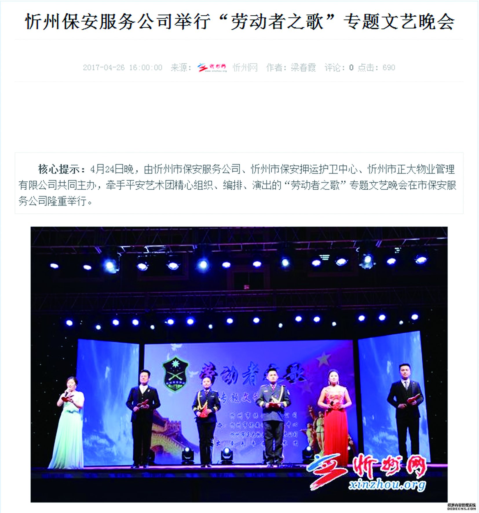 值“五一”國(guó)際勞動(dòng)節(jié)、“五四”青年節(jié)來(lái)臨之際,我公司成功舉辦“慶五一·迎五四”系列文體活動(dòng)。在公司西區(qū)大院舉行“勞動(dòng)者之歌”專(zhuān)題文藝晚會(huì)。舉辦這次活動(dòng)為進(jìn)一步豐富員工文化生活、促進(jìn)溝通交流、增強(qiáng)團(tuán)隊(duì)凝聚力,提高廣大員工的歸屬感和主人翁意識(shí),打造和諧共贏(yíng)的企業(yè)文化,樹(shù)立企業(yè)良好的社會(huì)形象。向長(zhǎng)期以來(lái)關(guān)心、支持公司事業(yè)發(fā)展的社會(huì)各界人士表示衷心的感謝。節(jié)目?jī)?nèi)容包括舞蹈、配樂(lè)詩(shī)朗誦、制式服裝秀、歌曲、小品、曲藝、戲曲等。異彩紛呈的節(jié)目博得觀(guān)眾陣陣掌聲,吸引了眾多市民駐足欣賞。
