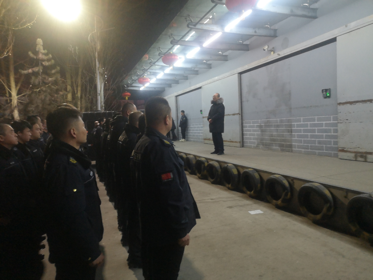 在中心庫駐地全體隊員集合完畢后,集團公司黨委委員、副總經理王明生作了簡短的講話,他代表公司向奮戰(zhàn)在一線的守押隊員表示衷心感謝和新年的誠摯問候,他指出,一年來,全體守押隊員盡職盡責,擔當作為,風雨無阻,寒冷不懼,始終如一,辛勤付出,圓滿完成公司的各項工作任務,為公司的安全穩(wěn)定發(fā)展作出了應有的貢獻,取得了良好效益和驕人業(yè)績,得到了領導的贊揚和大家的認可。他強調,在新的一年,希望全體守押員工,不忘公司重托,不負領導期望,認真履職盡責,忠誠擔當作為,堅守初心,敬業(yè)奉獻,團結奮進,繼續(xù)努力,為公司的高質量發(fā)展再立新功!